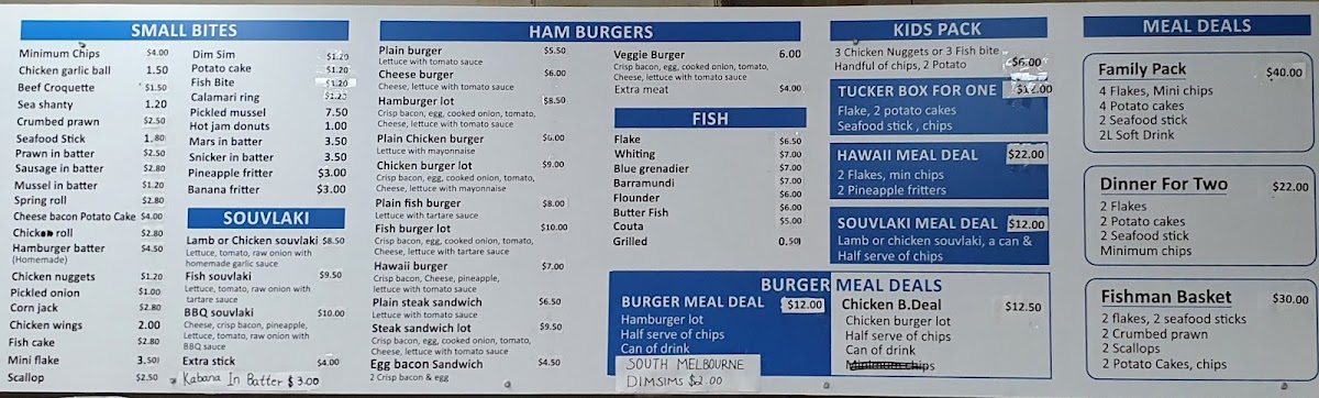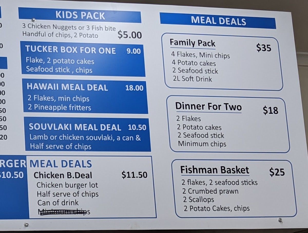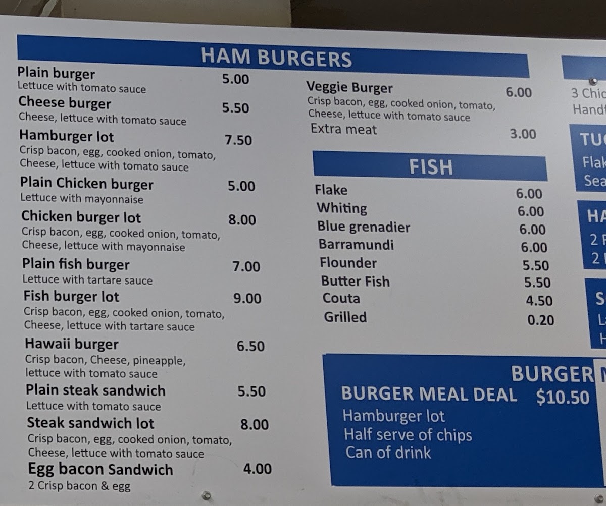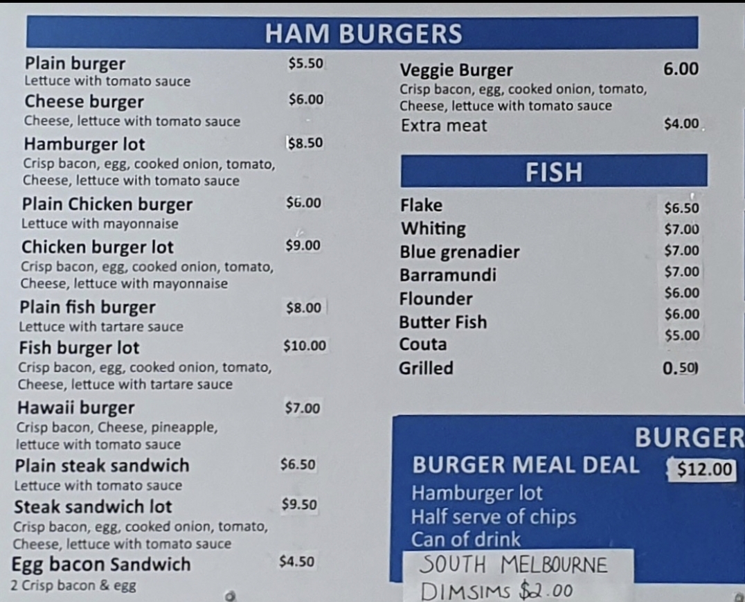 Overall, the menu at Dumfries Fish And Chips offers an impressively diverse range that goes well beyond the typical takeaway, making it a satisfying spot for a variety of cravings. From classic staples like Fresh Flake - Small Serve, Classic Fresh Fish & Chips, and the gluten-free Chick pea Battered Fresh Fish (G.F) to hearty options such as the Seafood Trio Box and Crispy Seafood Basket Box, the seafood selection is clearly a highlight. The inclusion of gourmet choices like Fresh Grilled Barramundi and Signature Grilled Fish Plate adds a premium touch. Beyond seafood, the menu expands into filling options like the Double Brekky Roll (Halal), Wagyu’s Egg Roll, and satisfying burgers such as the Hero Chicken (Grilled or Crispy) and Crispy Fish Burger. There’s also plenty for those seeking variety, including wraps like the Chicken Shawarma, indulgent bites like Buffalo Wings (8) and Corn Ribs, and even desserts like Belgian Chocolate Cheesecake. Drinks such as Watermelon Juice (100%) and Glass Bottle Coke 330ml round out the offerings. Altogether, the menu feels thoughtfully curated, balancing traditional fish-and-chip favorites with modern, diverse additions that cater to a wide range of tastes.
